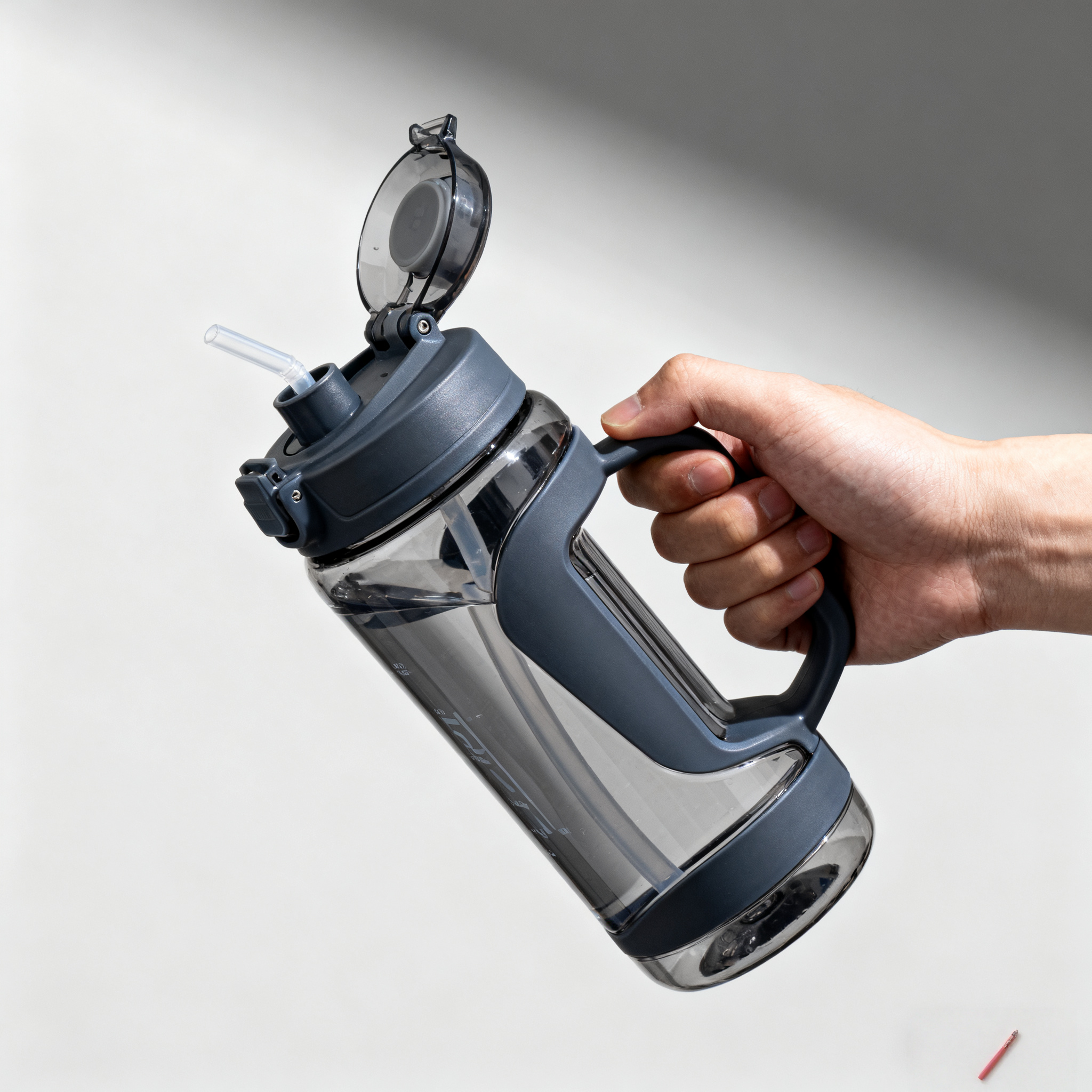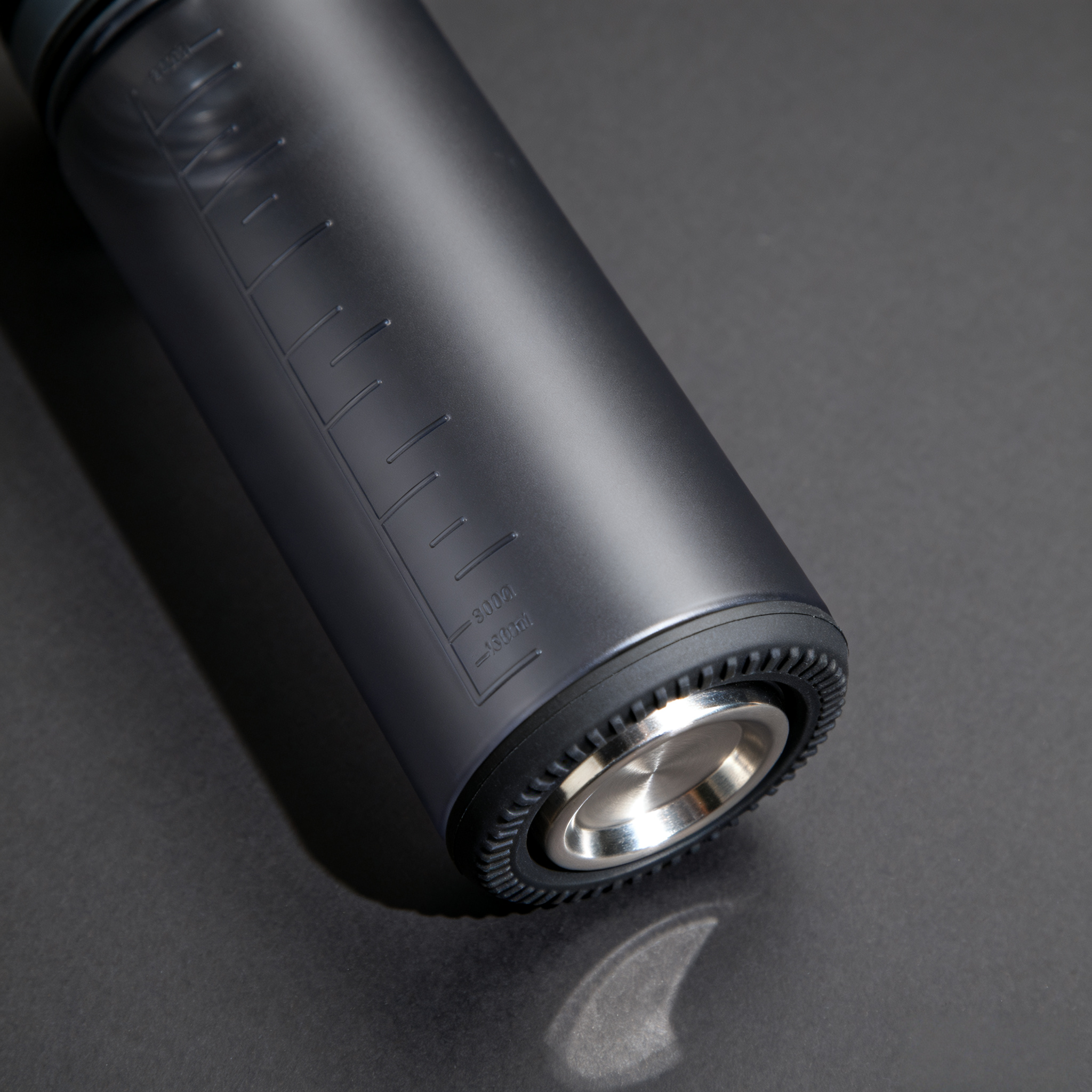 Minimalist Beige Ceramic Mug with Brown Accents and Lid
